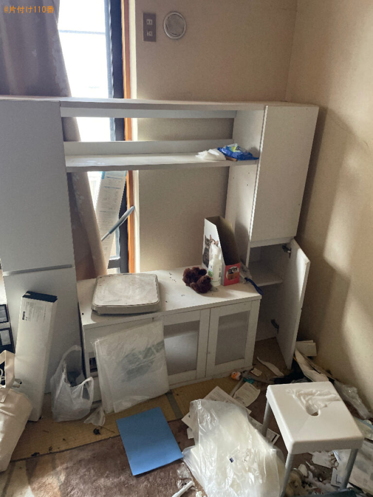 | 担当のコメント | テレビボード、プリンター、椅子等の処理にお困りのお客様からご相談いただきました。自治体の粗大ゴミ回収日は決まっていてすぐには処分できないですよね。片付け110番では、最短即日お伺いさせていただきます。不用品にお困りの際はまたいつでもご相談ください。 |